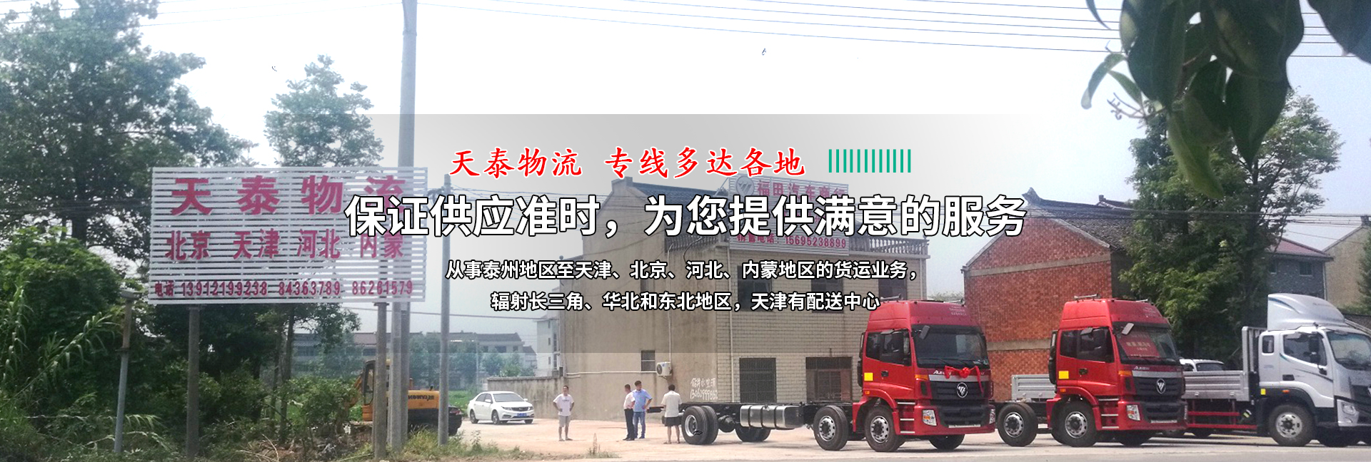 公司從事泰州地區(qū)至天津、北京、河北、內(nèi)蒙地區(qū)的貨運(yùn)業(yè)務(wù),輻射長(zhǎng)三角、華北和東北地區(qū),天津有配送中心。